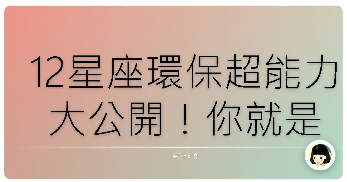 誰說環保很難?其實每個星座都有獨一無二的環保潛力,讓我們一起發掘你的環保超能力,讓地球更美麗!