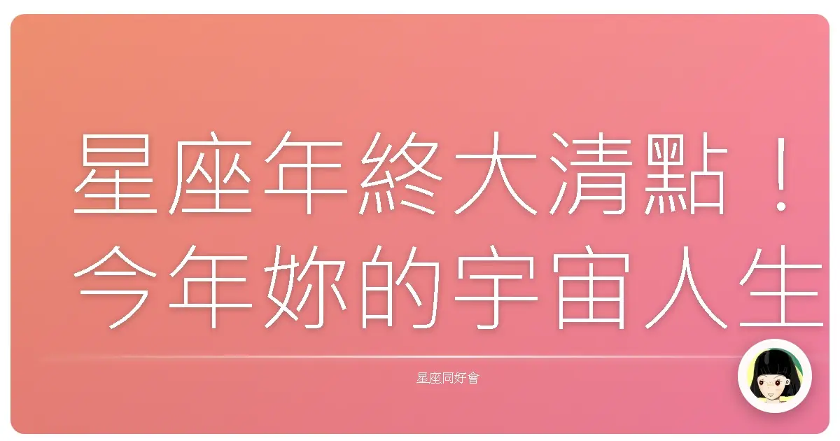年底到啦,別急著滑手機,跟著十二星座一起回顧這一年,看看妳的宇宙人生進度條跑了多少,順便把心情暖暖包準備好,一起迎接新的一年!